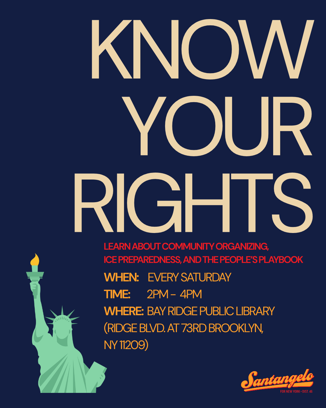 Know your rights for ICE interactions, including in public, at your home, or at your place of business. Learn more about community preparedness every Saturday at 2pm. Led by Joe.
