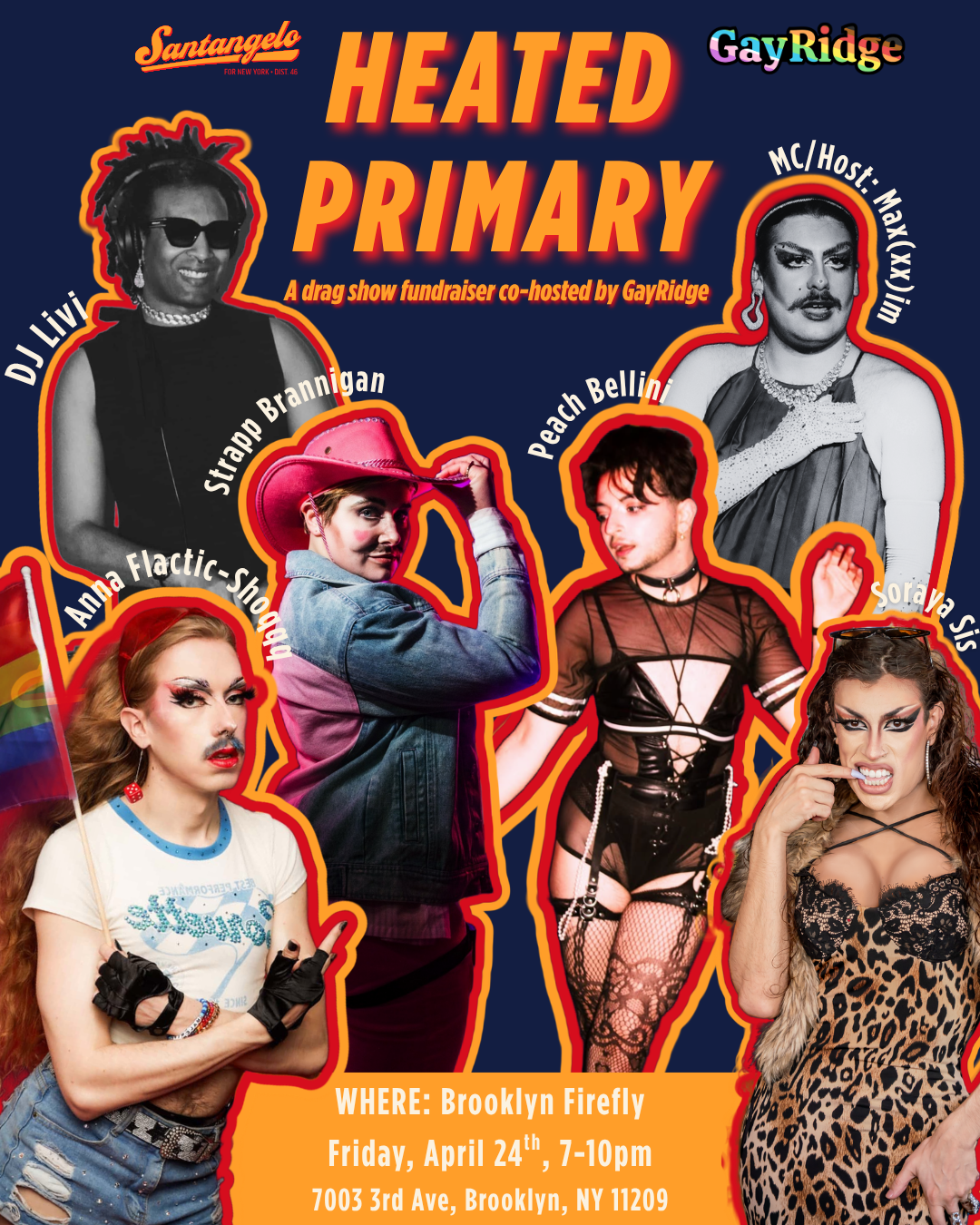 That’s why we’ve planned an exciting drag show of our own. NEXT FRIDAY on April 24th, is our "Heated Primary" a drag fundraiser co-hosted by GayRidge. Come out for some of the HOTTEST performances by Strapp Brannigan, Peach Bellini, Anna Flactic-Shoqqq, and Soraya Sis, with ref/host Max(xx)im and DJ Livi. Come support a candidate who is fiercer than any of his opponents.