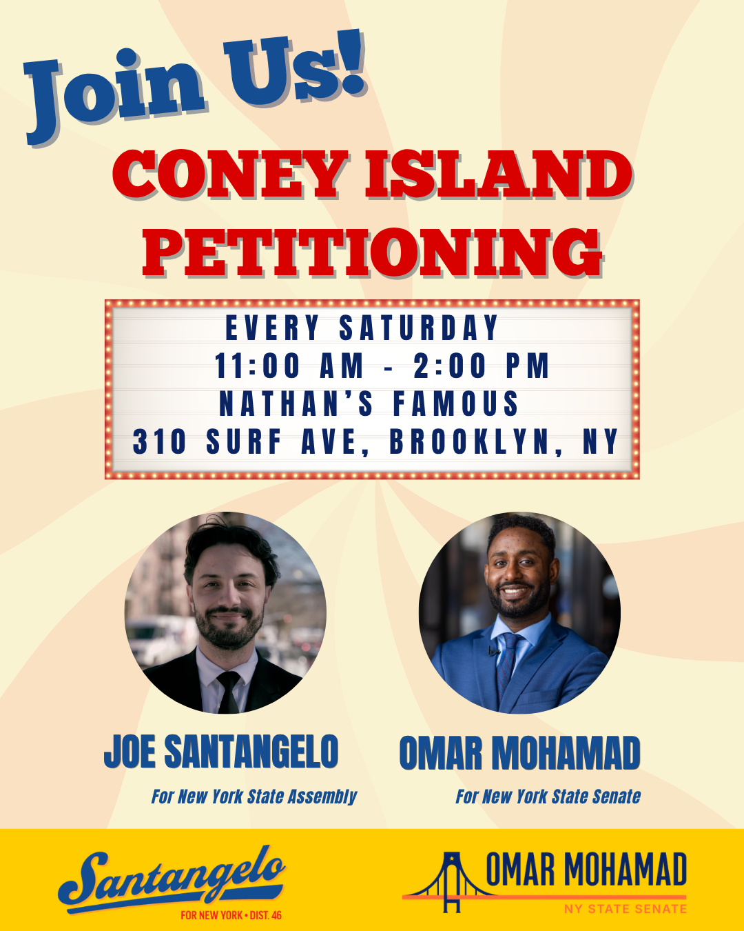 Come canvass with us to get the word out about Joe and Omar in Coney Island!
